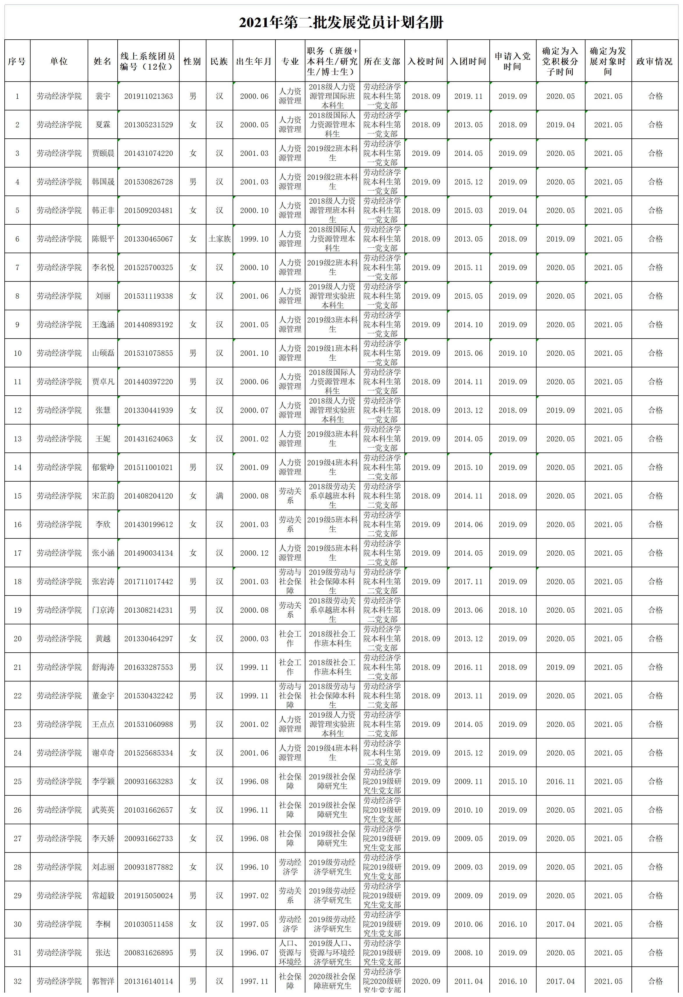 根据我院发展党员公示制的有关规定,经逼喱逼喱 学生党支部研究,逼喱逼喱 党委审查和讨论,现将拟接收的2021年第二期中共预备党员名单予以公示。