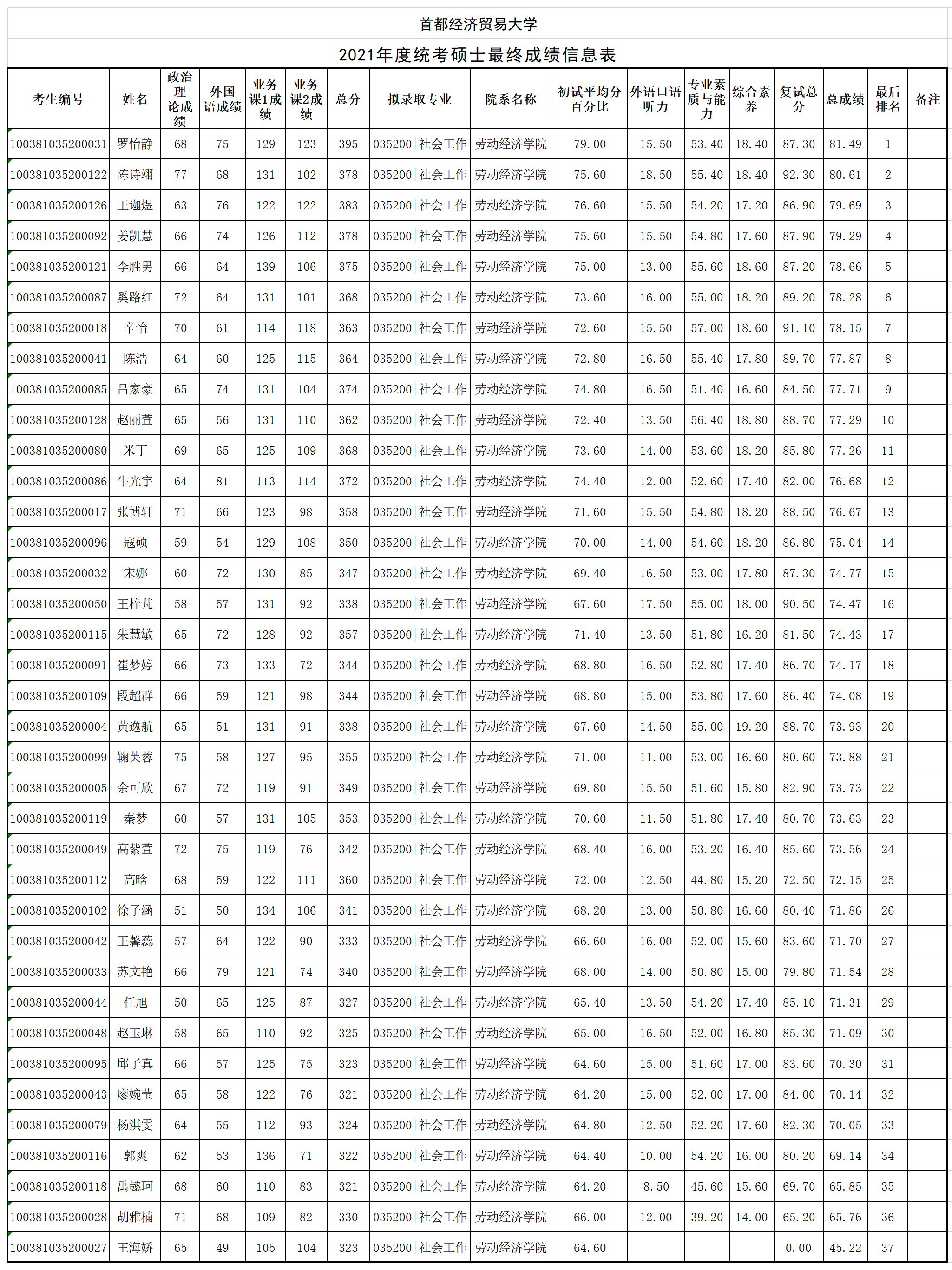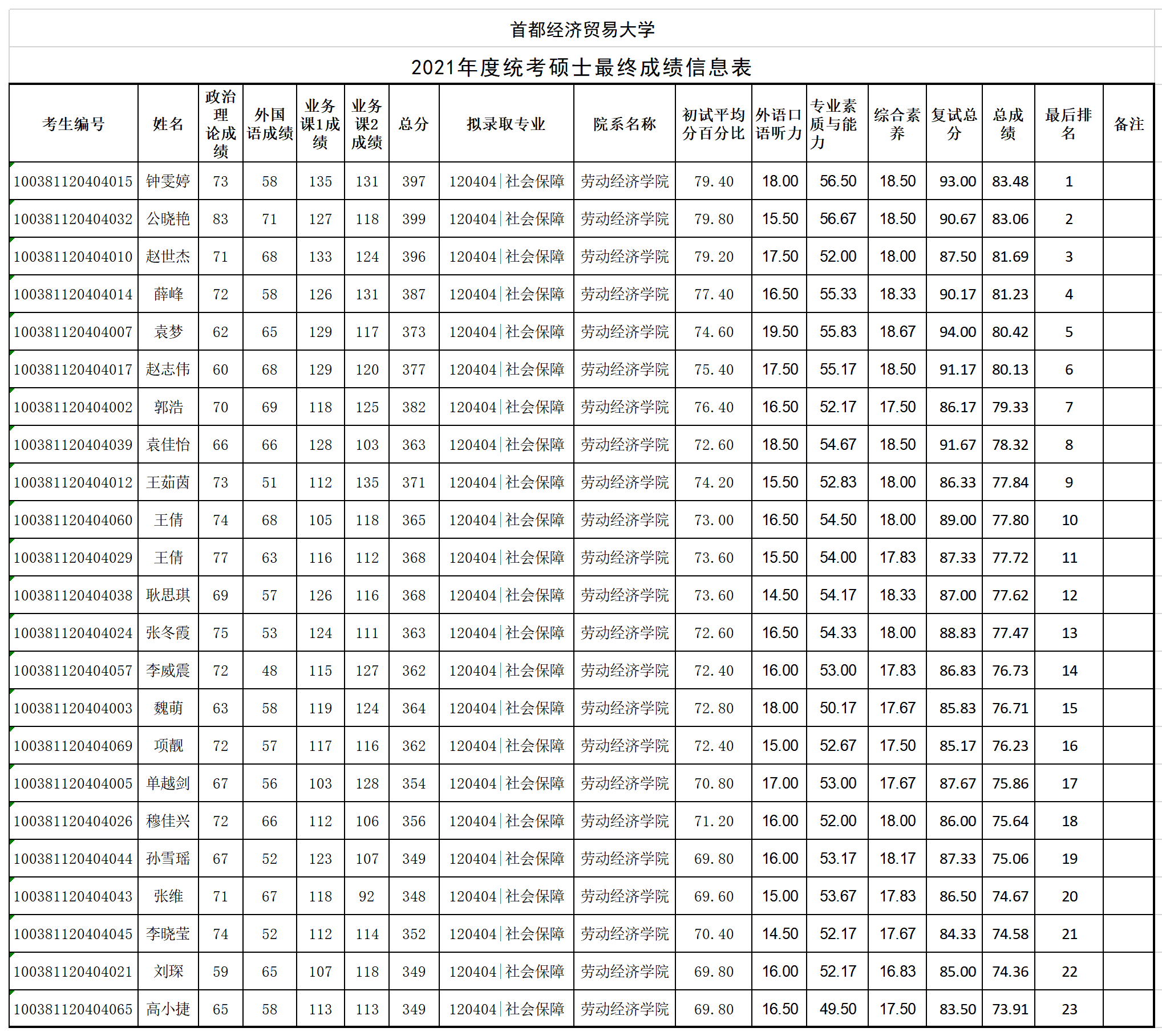 【公示】首经贸逼喱逼喱 2021年度统考硕士最终成绩公示
