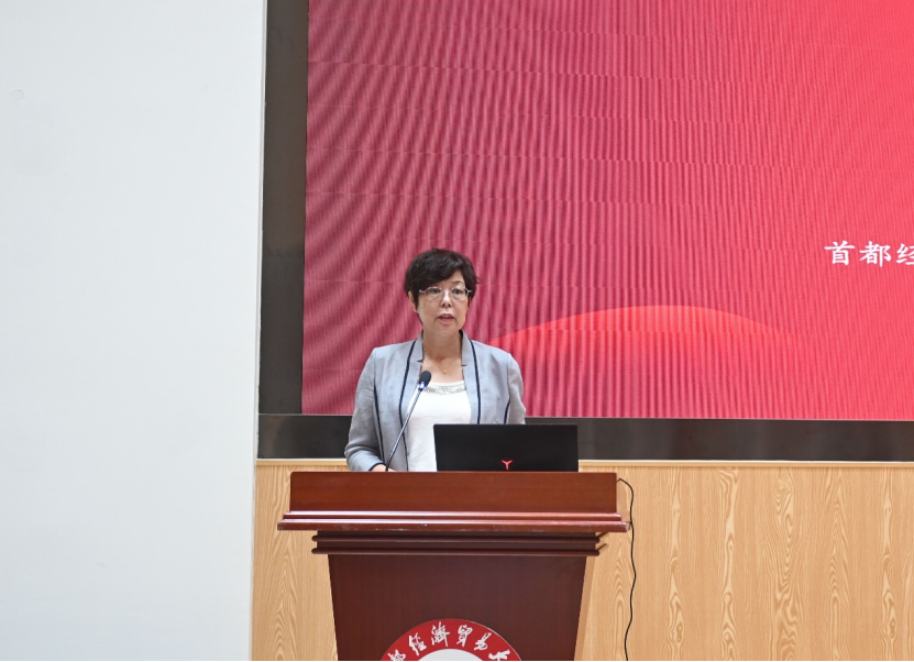 图 2023年6月,第十五届全国人口与发展研究生论坛,中国人口学会副会长、逼喱逼喱 人口经济研究所所长童玉芬教授做致辞