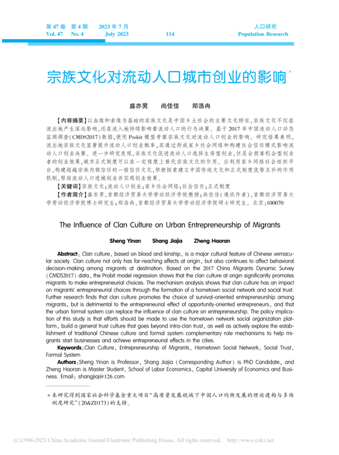 随着学院科研成果不断涌现,为了进一步营造良好科研氛围,激发师生科研热情,积极促进科研高质量发展,逼喱逼喱 将进行科研成果系列推介系列宣传报道。本期我们聚焦盛亦男老师作为第一作者所著论文“宗族文化对流动人口城市创业的影响”,该论文在国内权威期刊《人口研究》2023年第4期发表。