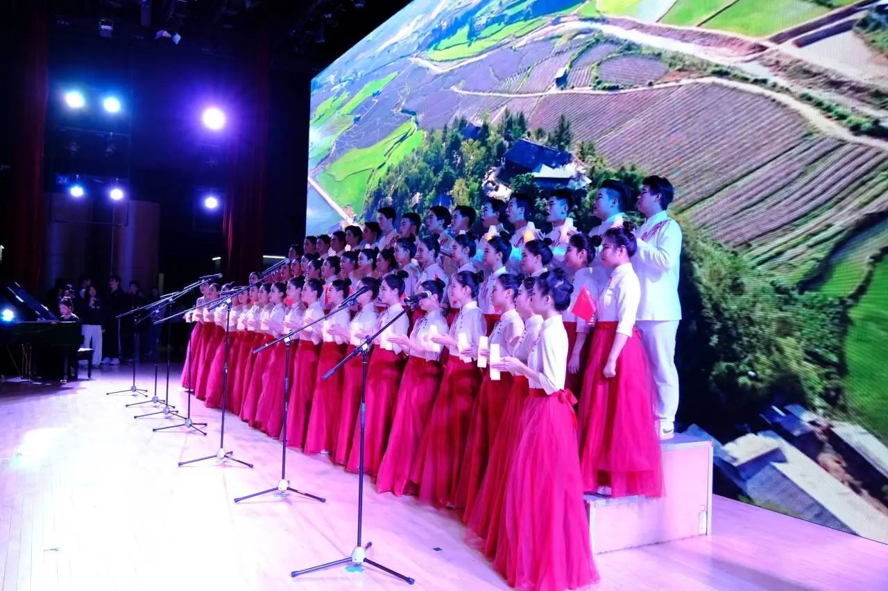 合唱旋律大气恢弘,歌曲渐入高潮。“灯火里的中国青春婀娜,灯火里的中国胸怀辽阔;灯火漫卷的万里山河,初心换回了百年承诺。”和谐动人的曲调扣人心弦,一段难忘的奋进故事正在娓娓道来。百年风雨兼程换来如今的岁月静好,灯火里的中国,正是中国共产党带领中国人民实现伟大梦想的生动缩影。中国共产党初心不改,以绵延灯火传递温暖与光亮,开启了灿烂辉煌的新时代。嘹亮的歌声唱出劳经学子心中激荡的中国梦,是对美好未来的坚定信念。