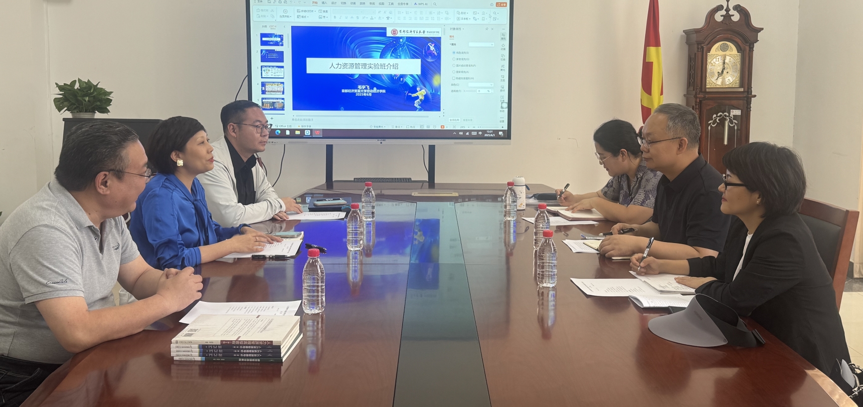 6月3日下午,廊坊师范学院经管学院副院长孟建锋、工商管理系主任韩立娜、骨干教师徐丽丽一行访问逼喱逼喱 ,并就人力资源管理专业数智化建设与实践教学召开研讨会。逼喱逼喱 党委书记何勤教授、人力资源管理系党支部书记毛宇飞副教授、分工会主席周施恩副教授参会。