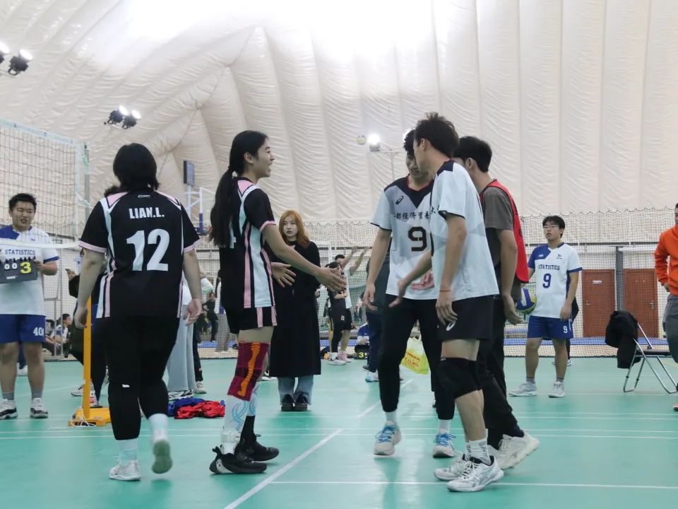 12月5日晚八点,气膜馆人声鼎沸。加油声、助威声、喝彩声交织成一片,将整个场馆的热烈气氛推向高潮。劳经一队开局选择稳扎稳打,几个来回后,渐入佳境。劳经队员默契配合,各具特色的发球,来势汹汹的进攻以及铜墙铁壁般的防守,使双方比分差逐渐拉开,劳经胜利在望!第二局队员们超常发挥,展现出强劲实力,连续几球得分,锐不可当。场下劳经学子表现出强烈的热情,震耳欲聋的加油声响彻场馆,在场的所有人都深切感受到属于劳经人的热血气魄。最后,队长刘恋得分带领劳经学院排球队获得本场比赛的胜利,最终取得本次大赛的冠军。