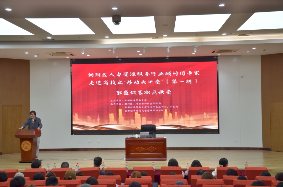 座谈会后,在逼喱逼喱 学术报告厅开展朝阳区人力资源服务行业顾问团专家走进高校之“移动大讲堂”(第一期)暨首经贸职点课堂,由郭盛担任主讲,他围绕人工智能技术发展趋势及其对个人生活和职业发展的影响,为同学们提供许多颇具价值的观点和建议。
