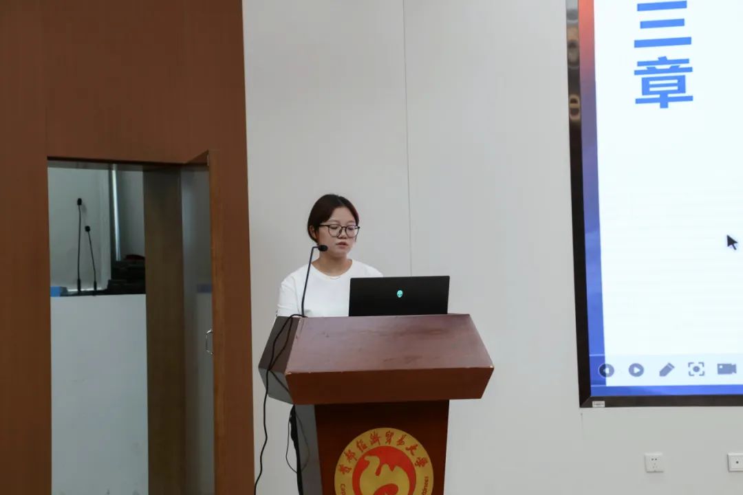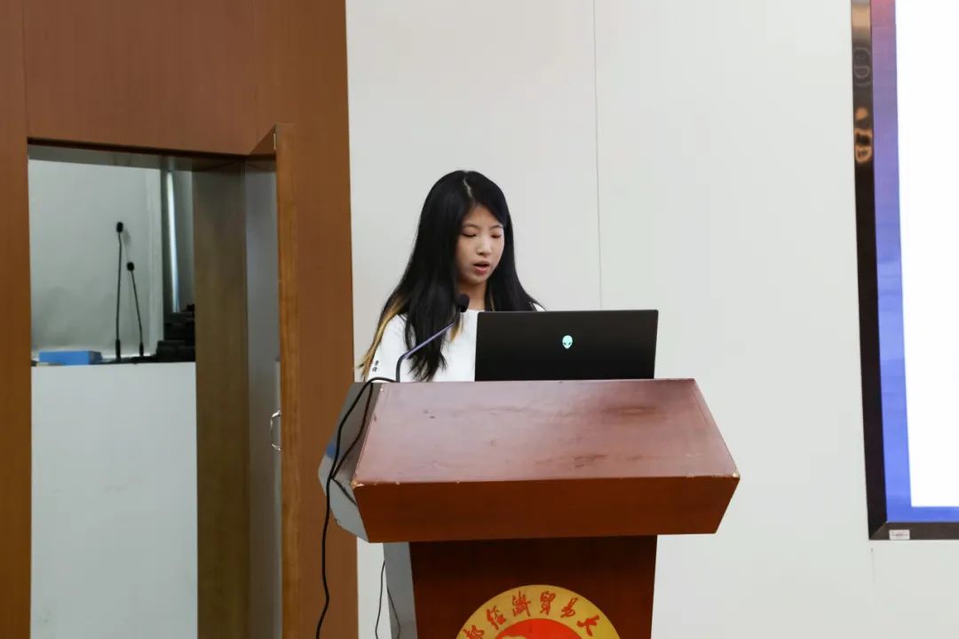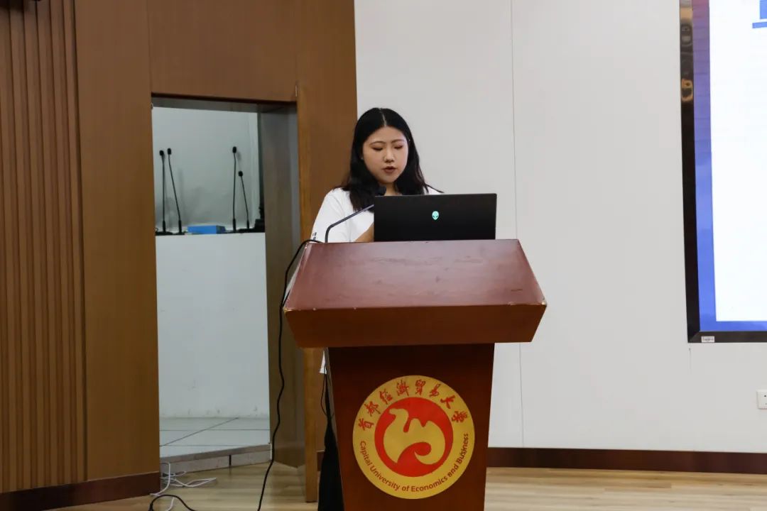 两组暑期社会实践团队进行展示,分享他们扎根实践的经验与感悟。“发扬劳动精神,赓续红色血脉”红色劳经宣讲队项目组长范明哲,为大家介绍了团队构成、项目主题与流程以及其中具体活动的设计。他们希望通过此次活动讲好劳经故事,并将实践中获得的知识与经验变成未来学习上的推手。“乡村里的艺术范儿”艺术融合视角下的乡村振兴路径研究项目组韩珈航、黄咏菲,为大家分享了项目的背景、活动设计中的一些细节、以及实践过程中的趣事与收获。他们通过这次活动更加深入的认识了新时代农村面貌、乡村振兴,并希望在以后的学习生活中更好的领悟新时代赋予大学生的社会责任。“纸上得来终觉浅,绝知此事要躬行”劳经学子们在实践中淬炼自己的青春,将学院的精神散播到更广阔的天地。