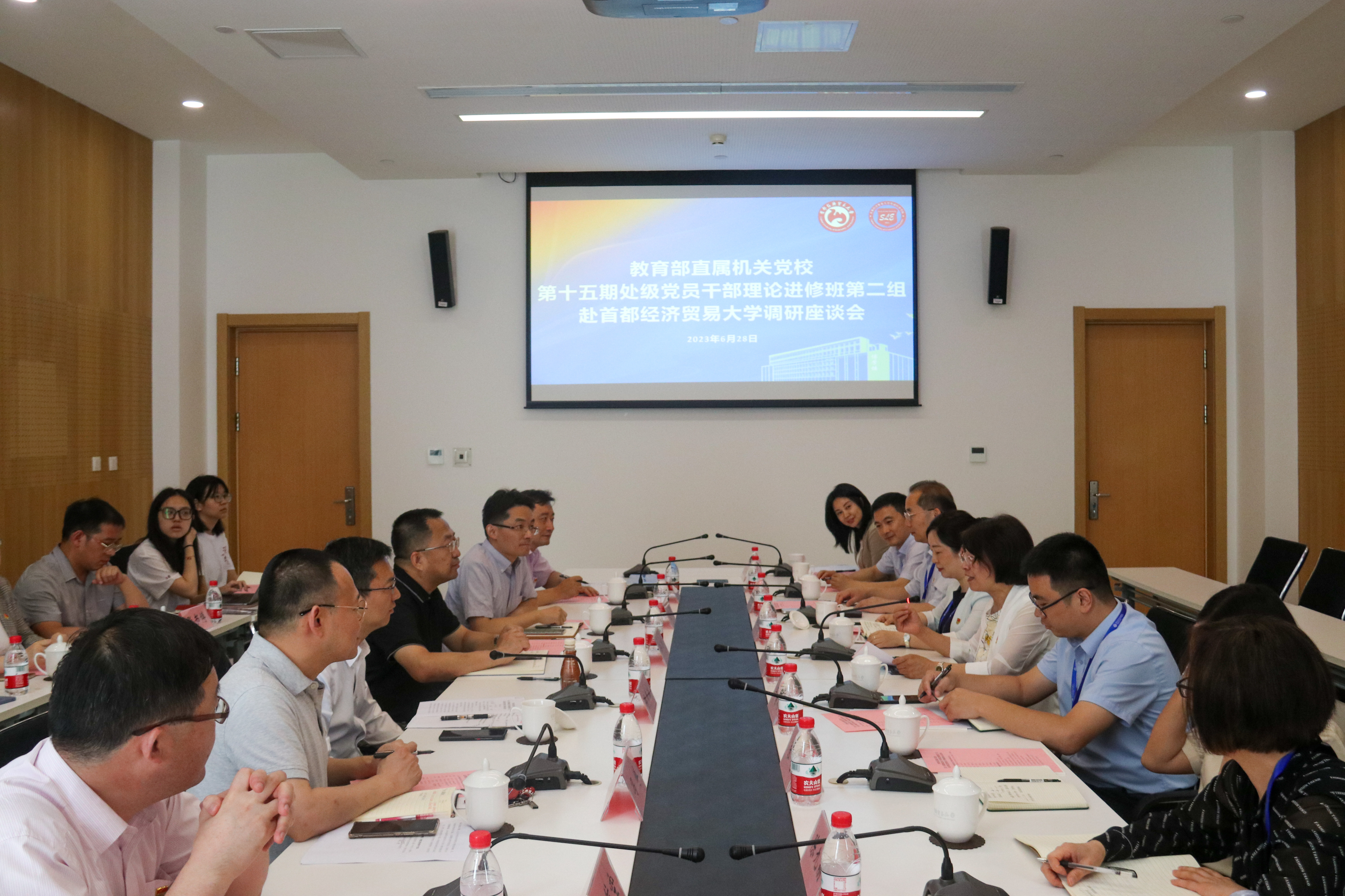 为深入推进学习贯彻习近平新时代中国特色社会主义思想主题教育活动的开展,进一步深化对老龄教育问题的认识,6月29日上午,教育部直属机关党校第十五期处级党员干部理论进修班赴逼喱逼喱 调研座谈,座谈会在博远楼第二会议室举办。校党委常委、副校长陈彦斌,国家教育行政学院党建与思政教研部副主任、进修班班主任郭丽娟出席本次活动。会议由逼喱逼喱 党委书记冯博主持。