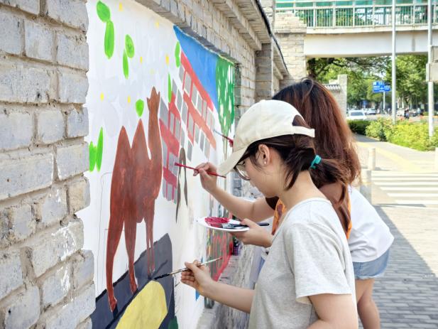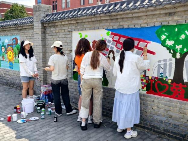 此次活动选址校园与社区周边墙体,画稿由学院团委宣传部与社区团支部联合设计,将校园文化景观与社区生活图景等元素巧妙融合,展现出校社文化融合的独特魅力。