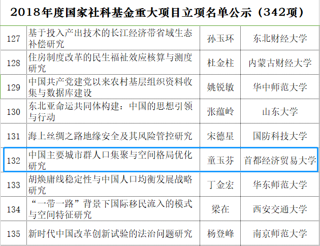 10月23日,全国哲学社会科学规划办公室公示了2018年度国家社科基金重大项目立项名单,我院劳动经济学国家重点学科负责人、学科带头人,人口经济研究所所长,《人口与经济》主编童玉芬教授作为首席专家申报的《中国主要城市群人口集聚与空间格局优化研究》通过立项评审。