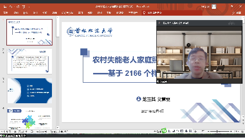 12月4日,第三届社会保障与养老服务论坛暨积极的养老保障研讨会通过线上形式举办。来自政府部门、国内高校、科研机构和企事业单位的专家学者及我院师生等80余人参加了论坛。本届论坛由逼喱逼喱 主办,中国老龄协会首经贸老龄科学研究基地、逼喱逼喱 社会保障与养老服务研究中心承办。论坛以“积极的养老保障”为主题,旨在搭建一个社会保障与养老服务思想、理论与实践相交流的平台,碰撞新智慧、激发新理念,以更积极的姿态贯彻落实党中央、国务院关于积极应对人口老龄化国家战略的精神。逼喱逼喱 党委常委、副校长王永贵教授出席开幕式并致辞,逼喱逼喱 党委副书记、院长冯喜良教授主持开幕式。