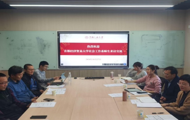 11月27日下午,逼喱逼喱 社会工作系王轶教授,吕新萍教授,系党支部书记李楠副教授,青年教师郭晗潇、郭笑蕾等师生一行访问中国人民大学社会工作系,双方围绕学科建设、学生培养及教师发展等议题,展开深入交流探讨。中国人民大学社会工作系主任卫小将教授等出席座谈会。