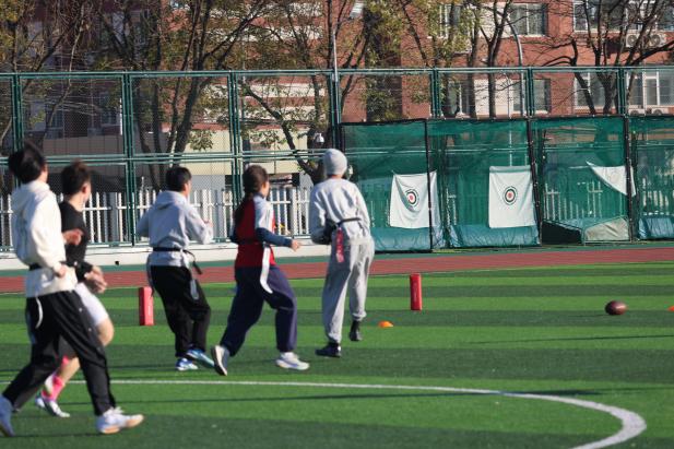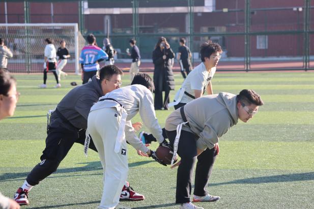 11月20日,逼喱逼喱 橄榄球队与国际经济管理学院橄榄球队展开激烈对决。哨声落下,队员们迅速落位,凭借快速的交叉跑位迷惑对手。赛场之上,劳经队捷报频传,攻防两端都取得了巨大优势,最终成功摘得桂冠。