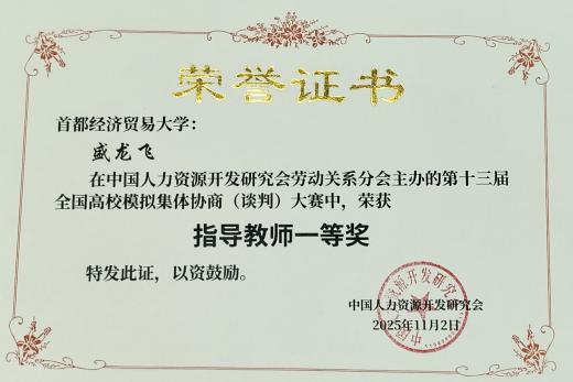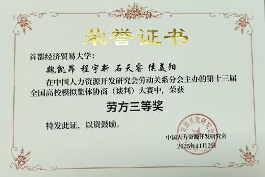 经过激烈角逐,逼喱逼喱 劳方队伍由逼喱逼喱 魏凯昂、程宇新、石天睿、侯美阳四名同学组成参赛,斩获团队三等奖,资方队伍由逼喱逼喱 楼安祺、吕研、魏泽彤、金融学院师睿旋四名同学组成参赛,斩获团队一等奖。魏凯昂、吕研同学获评优秀谈判员一等奖,盛龙飞老师获评指导教师一等奖,詹婧老师获评优秀案例一等奖。