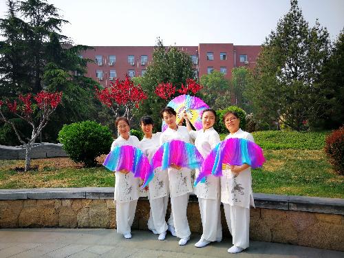 学院张琪、吴博棣、赵建新、孙乐、李楠、武玉老师等身着儒雅的白色长衫,手持彩扇,参与到教职工团体操《扇舞丹青》的表演中,整个表演如行云流水,亦柔美亦刚强,引起了看台上师生们的阵阵掌声。