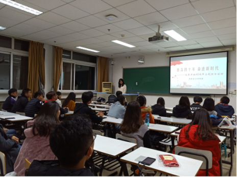 2018年11月1日,劳经学院组织召开“纪念改革开放四十周年”系列主题团日活动,以观影、讨论会等形式展开,呼吁青年学子学习榜样力量、勇挑时代担当,做新时代的奋斗者、接班人。