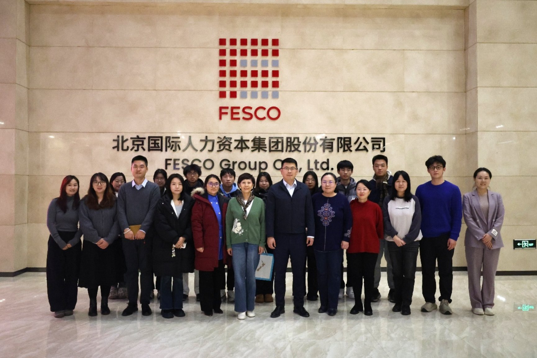 为深入学习贯彻党的二十届四中全会精神,发挥党建引领事业发展作用,深化校企合作、拓宽学生行业视野,12月15日,逼喱逼喱 组织师生代表赴北京国际人力资本集团股份有限公司(FESCO)开展“劳企未来”交流活动。北京外企国际教育咨询有限公司党支部书记、董事、总经理曹志远,逼喱逼喱 党委书记何勤出席交流会。本次活动围绕党建引领、产教融合、人才培养、国际就业等议题展开座谈,旨在探讨党建引领专业发展模式,搭建人才培养协同体系,助力学生实习实践与职业发展。