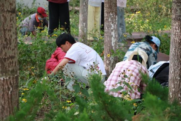 在学习使用规范与除草技巧后,同学们分组开展实践活动,于指定区域清理杂草、挥洒汗水。劳动过程中师生们互帮互助、彼此勉励。最后,同学们分工归拢、搬运杂草,恢复实践园场地整洁。