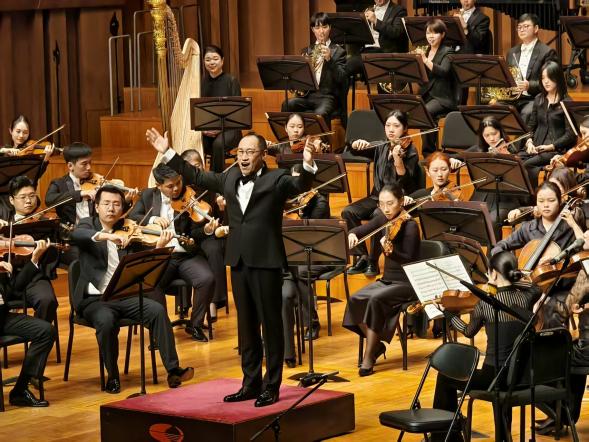 音乐会现场,国家大剧院管弦乐团与合唱团深情演绎了《黄河大合唱》的经典篇章。从《黄河船夫曲》的铿锵节奏,到《黄水谣》的动人旋律,再到《保卫黄河》的磅礴气势……每一个音符都激荡着中华儿女的热血与豪情,整个乐章生动再现了中华民族的崇高气节,彰显出中国人民取得抗战胜利的坚定决心。