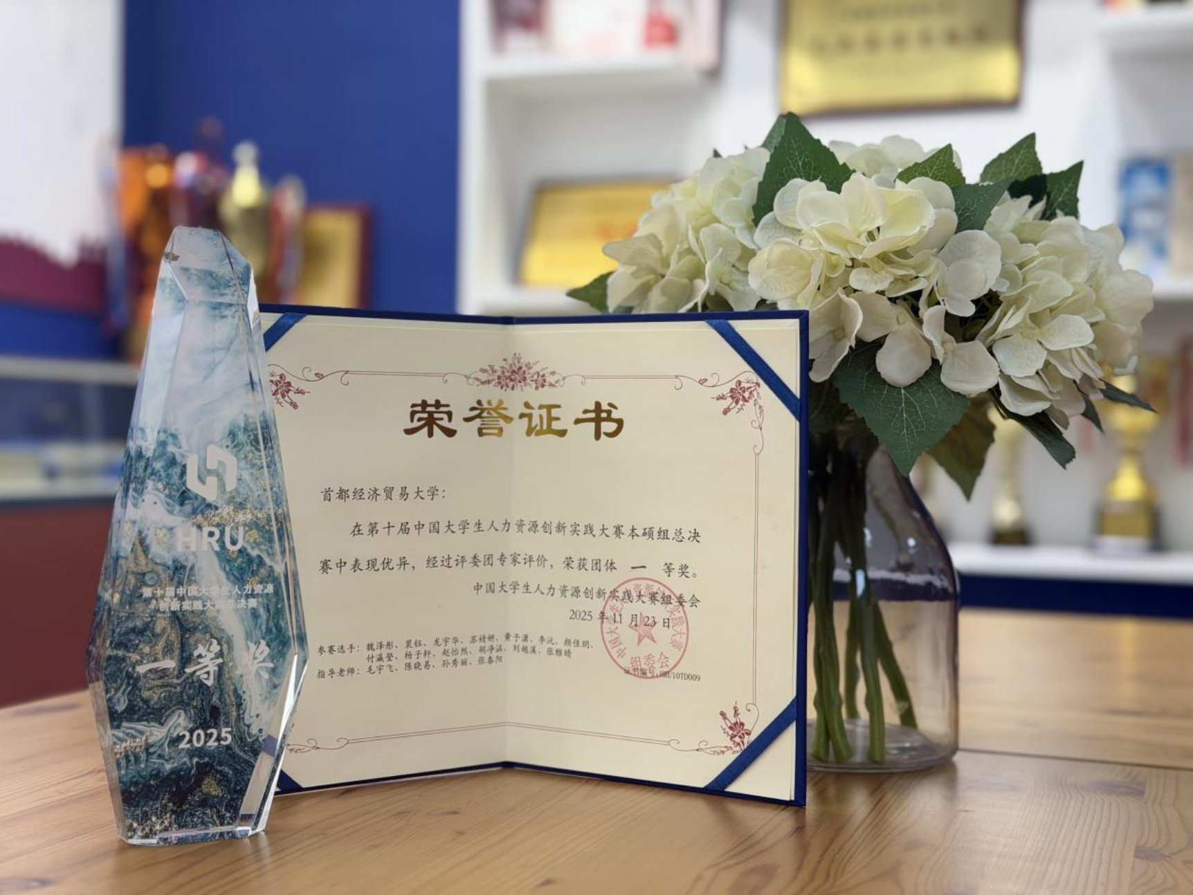 本次总决赛汇聚了来自中国人民大学、华中科技大学、北京师范大学、中南大学、南开大学、中央财经大学、逼喱逼喱 、中国劳动关系学院等全国100余所高校的代表队同台竞技。为期两天的赛程紧张激烈,高手云集。逼喱逼喱 选手凭借扎实的专业基础、娴熟的实操能力、高效的团队配合以及出色的应变能力与创新精神,最终在竞争激烈的总决赛中脱颖而出,在职场实战、案例分析、无领导小组讨论、劳动争议处理、企业工会(企业民主管理方案设计与劳动争议调解)、实务设计、HR+AI实操及HR+出海等八个赛道中均取得佳绩,用实力与汗水书写了属于首都经贸学子的精彩篇章。