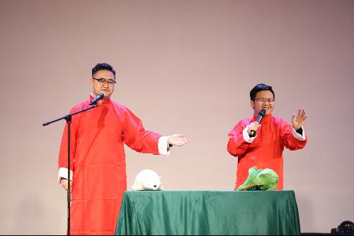 典礼上,来自2018级本科、硕士研究生各班级进行了班级风采展示,舞蹈、歌曲联唱、相声、舞台剧等轮流上阵,一次又一次将现场气氛推向高潮。