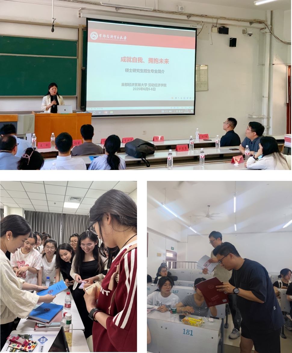6月5日,劳经学院教师代表肖周燕、刘俐伶、雷晓天、张书博和杨之旭分别赴河北金融学院的五个二级学院进行宣讲。宣讲团为河北金融学院师生介绍劳经学院的历史沿革、机构设置、办学规模与学科层次,对劳经学院硕士生的培养计划、课程体系、培养成果与就业方向进行了详细介绍,同时就奖助政策、招生计划及考试内容作了系统说明,帮助同学们全面了解劳经学院的特色优势、录取要求及人才培养体系。互动交流环节,各系教师对同学们提出的问题进行了针对性解答,获得河北金融学院师生一致好评。