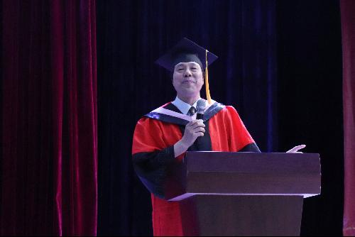 学院院长冯喜良教授在典礼上致辞,向所有2019届研究生毕业生们表示了祝贺,并感谢了多年来各位老师和家长们的培养、支持。他以学院第一届研究生毕业生、现任北京大学中国职业研究所所长陈宇学长的事迹激励毕业生要心怀理想、勇敢地向未来奔跑;要敢于实践、无畏挫折、勇攀高峰。她叮嘱同学要常“回家”看看,与母校母院情意相牵。