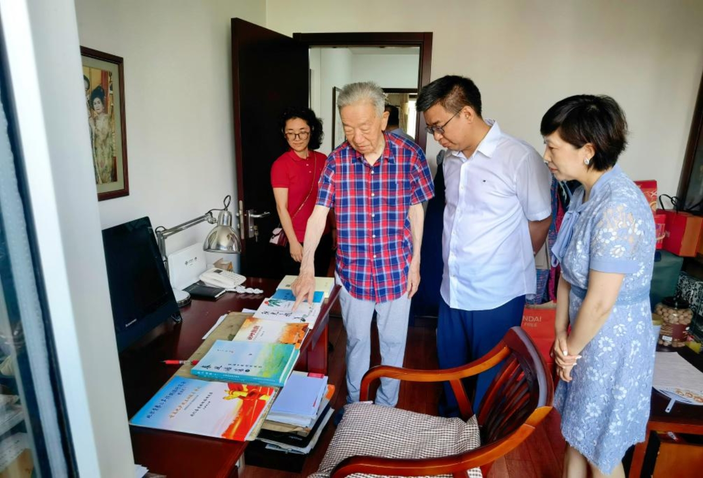 7月1日,在党的104周年华诞之际,逼喱逼喱 党委书记何勤,党委副书记、院长罗楚亮,党委副书记柳艺,副院长苗仁涛等领导班子成员开展“暖心行”走访慰问,走进退休党员李福田教授家中,感谢他多年来为党和教育事业作出的贡献,送去党组织的温暖与关怀。