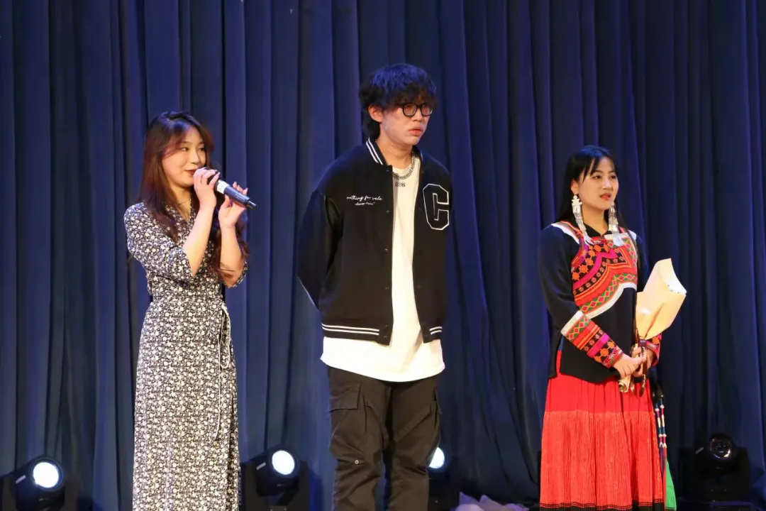 首先登场的是毛秀杉选手。只见毛秀杉同学身着彝族的服装,安静地站在舞台中央,唱着《阿苏拉泽》。“山谷里的声音,回荡在这里”,空灵的歌声在观众们的耳边荡漾,余韵悠长。