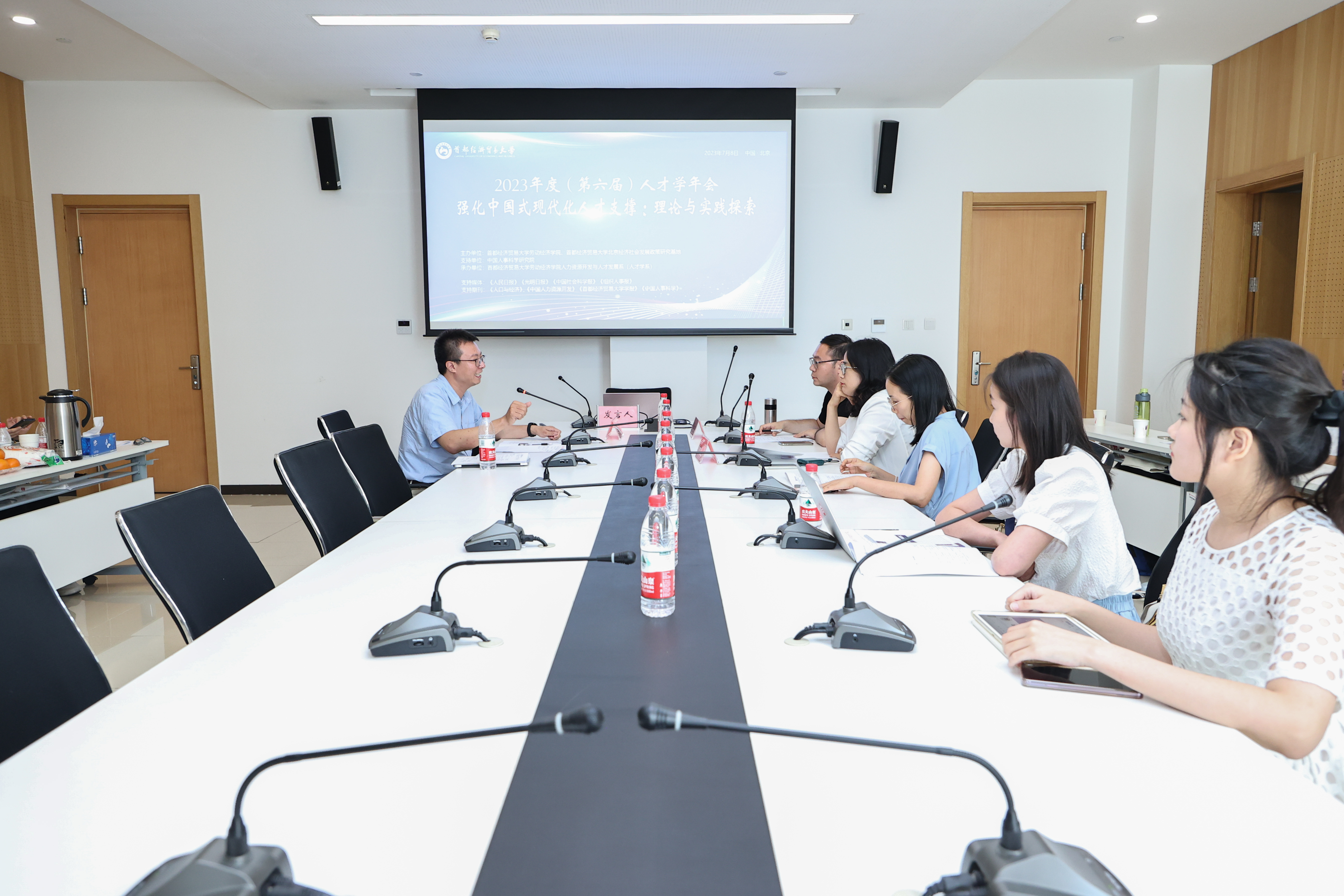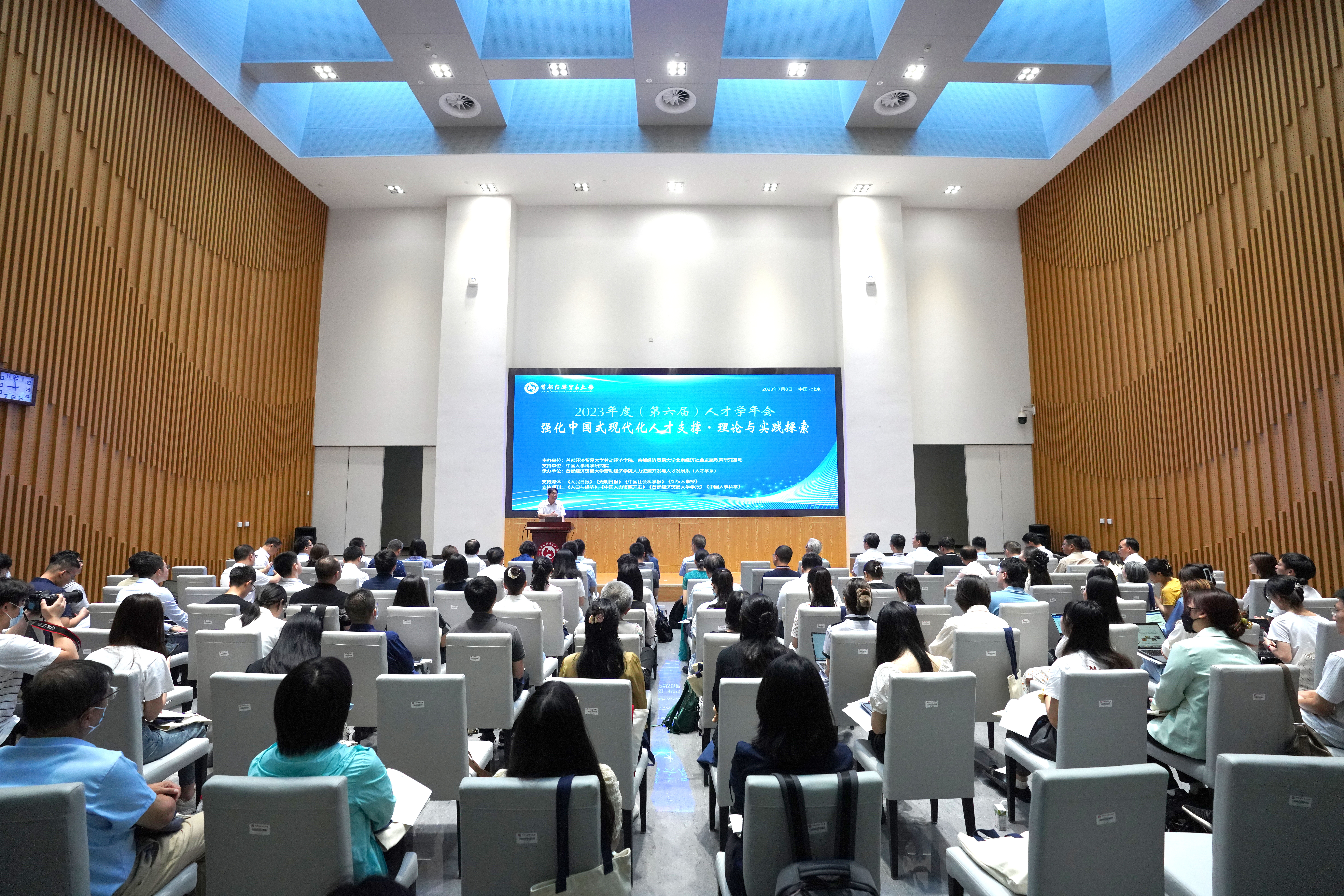 7月8日,2023年度(第六届)人才学年会“强化中国式现代化人才支撑·理论与实践探索”在逼喱逼喱 召开。本届人才学年会由逼喱逼喱 和北京经济社会发展政策研究基地主办,中国人事科学研究院支持,逼喱逼喱 人力资源开发与人才发展系(人才学系)承办,本届年会来自中国人民大学、北京大学、北京师范大学、逼喱逼喱 、山东大学、东北大学、北京邮电大学、天津大学、中国政法大学、中央民族大学、清华大学、西南政法大学、华东理工大学、国防大学政治学院、北京信息科技大学、北京工商大学、武汉理工大学、华南理工大学、西安电子科技大学、北京石油管理干部学院、河北经贸大学等全国25所高校,中国人事科学研究院、北京教育科学研究院、国家教育行政学院、河北省社会科学院、天津市中国特色社会主义理论体系研究中心等5所科研院所,中国人才研究会、中国人才研究会人才学专业委员会、劳动经济学会人才发展分会、中国职业经理人协会等4个学术团体,以及多家企事业单位的120多名研究者和实践者出席本届会议。