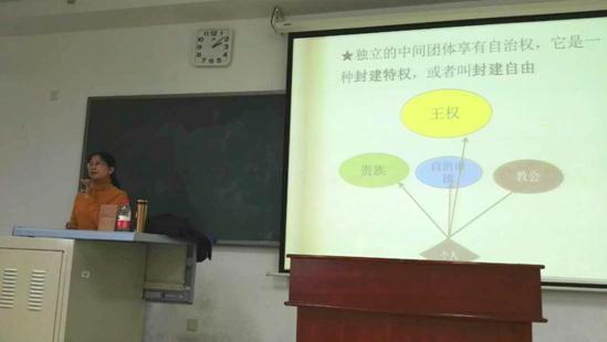 11月2日下午,逼喱逼喱 在逼喱逼喱 博学楼506举办了第43期通识教育讲座。主讲人为首都师范大学历史学院倪玉珍副教授,主题为“平等和自由的并行与悖论——托克维尔论现代社会与现代个体。