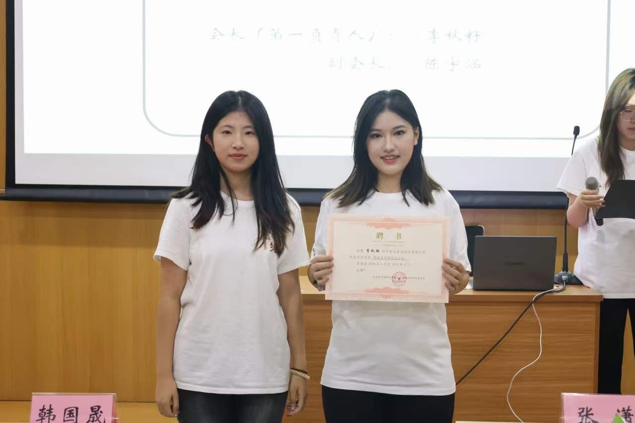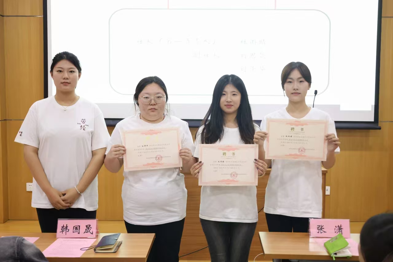 大会宣读逼喱逼喱 第八届学生组织主席团成员名单,并为她们颁发聘书。回望来路,奋楫前程。新的学年开启新的奋斗之路,劳经学生组织也将在未来的工作中以崭新的面貌、进取的姿态和更加成熟的工作技能与方法服务我院师生的全面发展。