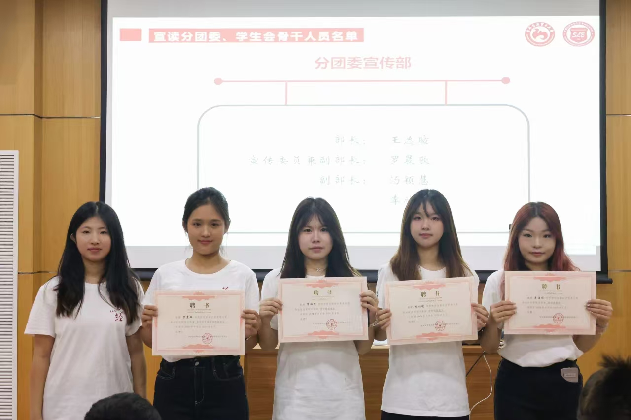 分团委副书记郭瑾钰代表新一届学生组织表态。她表示,将带领学生组织及时做好思想与身份上的转变,不仅需要踏实认真地履行职责,更要领会责任与担当的深刻内涵并为此付诸行动。同时,她也叮嘱学生干部不应忘记学生之本,应该合理规划学习与工作之间的时间分配,磨炼过硬本领,凝聚智慧与力量,为新一届劳经学生组织的建设不断做出贡献。