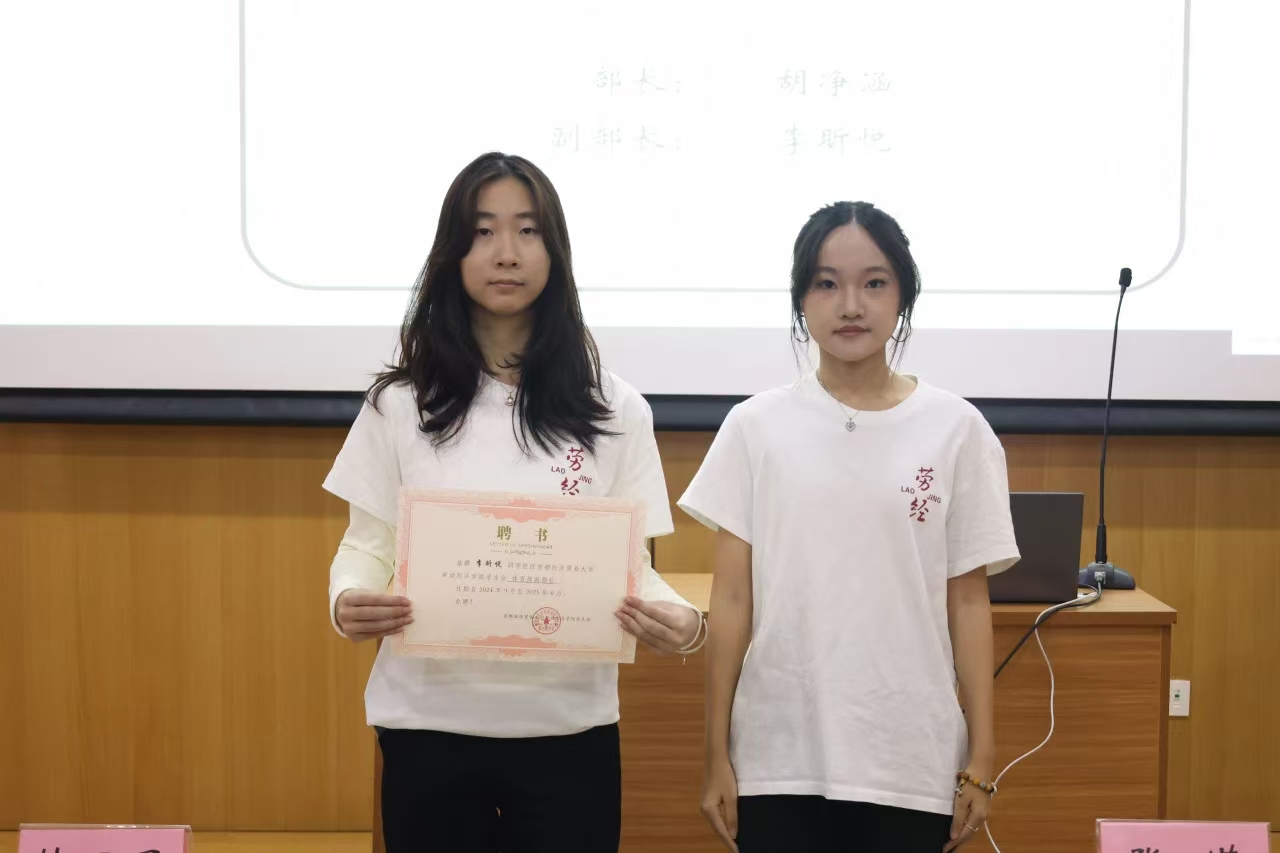 学院学生组织的建设与发展离不开每一位劳经人的辛勤付出与无私奉献,新一届学生干部的加入又带来了新的生机与力量,愿同学们在前行的道路上不忘初心,牢记使命,团结一心,携手并进,传承劳经精神,以开拓进取的青春姿态为劳经开创崭新的未来!