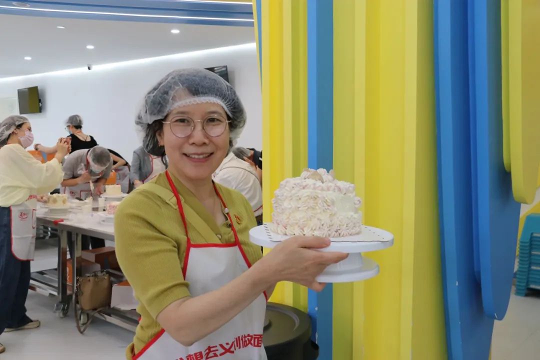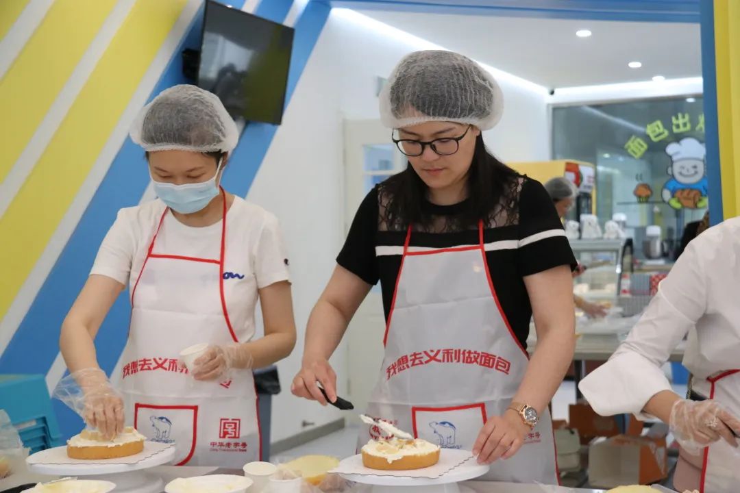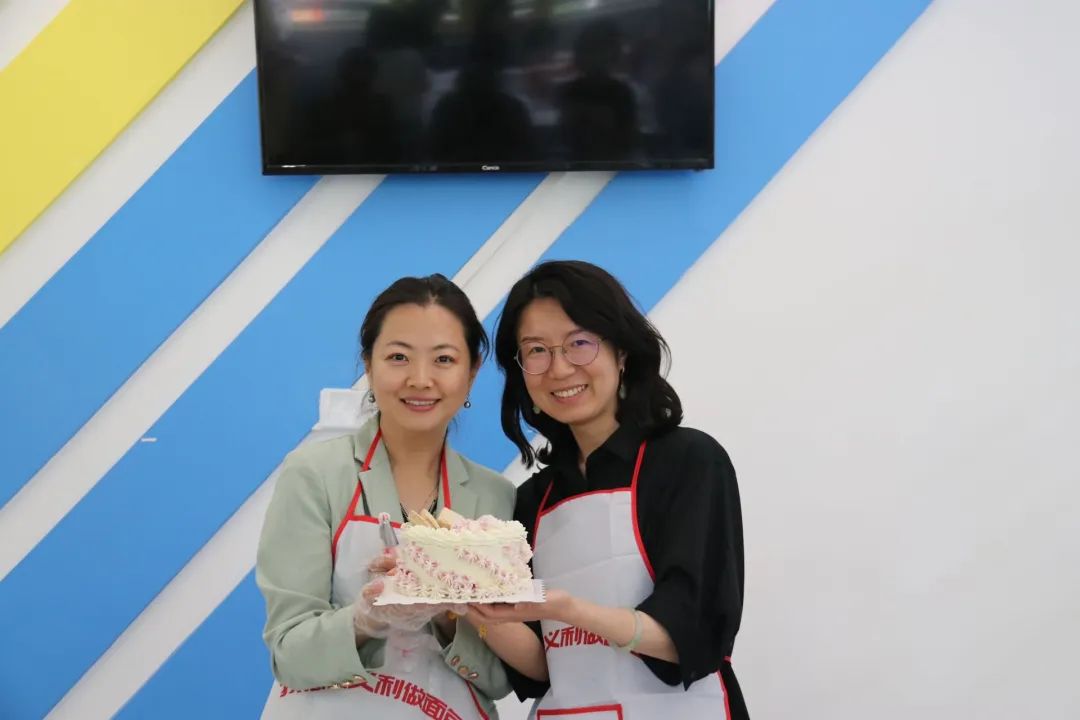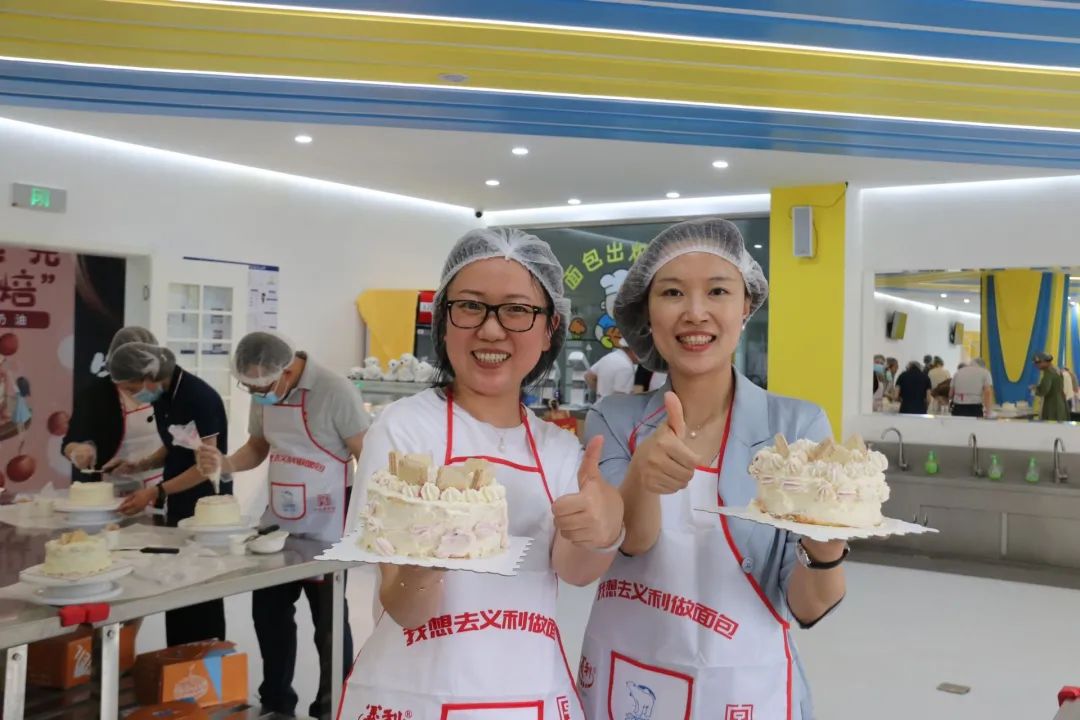参观企业展览后,学院老师来到互动体验园区,在专业工作人员指导下,利用准备好的材料完成蛋糕制作。制作过程中,老师们细心做好每一个步骤,制作出不同风格的蛋糕,在一涂一抹间,老师们感受劳动的乐趣,在互帮互助间,增进学院凝聚力。