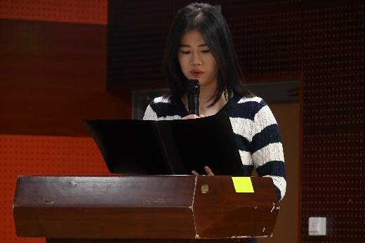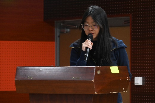 大会第八项,学生会“优秀干事”获奖代表曹翊菲发言。她表示,自己在本学期工作中深刻认识到各部门相互团结协作的重要性以及学生组织在发展的重要意义。同时,她希望与广大学生骨干一道以笃行之心,坚守初心责任,为学院学生组织创造更加灿烂辉煌的未来。