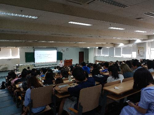 随后,副院长范围特别强调了实习期间的安全问题,希望同学们要牢固树立“安全第一”的思想,严格遵守用人单位的规章制度,圆满完成实习任务。除此之外,他还向同学们详细介绍了美国罗格斯大学的交流项目,优美的校园环境、一流的专业实力对学生而言极具吸引力。
