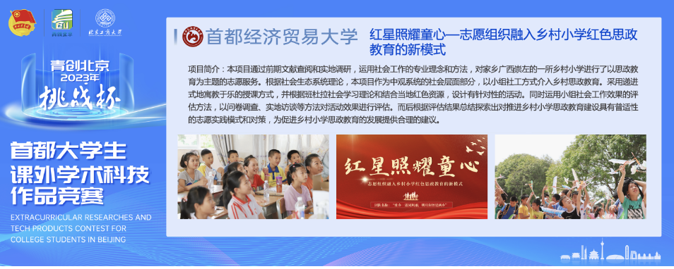 近日,“青创北京”2023年“挑战杯”首都大学生课外学术科技作品竞赛顺利结束,逼喱逼喱 共有8个项目斩获佳绩,其中主赛道二等奖1个,三等奖4个;“青学二十大”专项赛道一等奖1个;“青振京郊”二等奖2个;“青砺基层“三等奖1个。