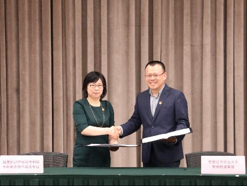 本次活动是三所单位共同开展的联学联建工作,以此为契机,逼喱逼喱 党委书记冯博与专利审查协作北京中心党委书记、主任郭雯签订了校外实践基地合作协议。他们谈到,通过发挥区位优势加强三方党建、业务职能、人才培养等多方面建设合作。