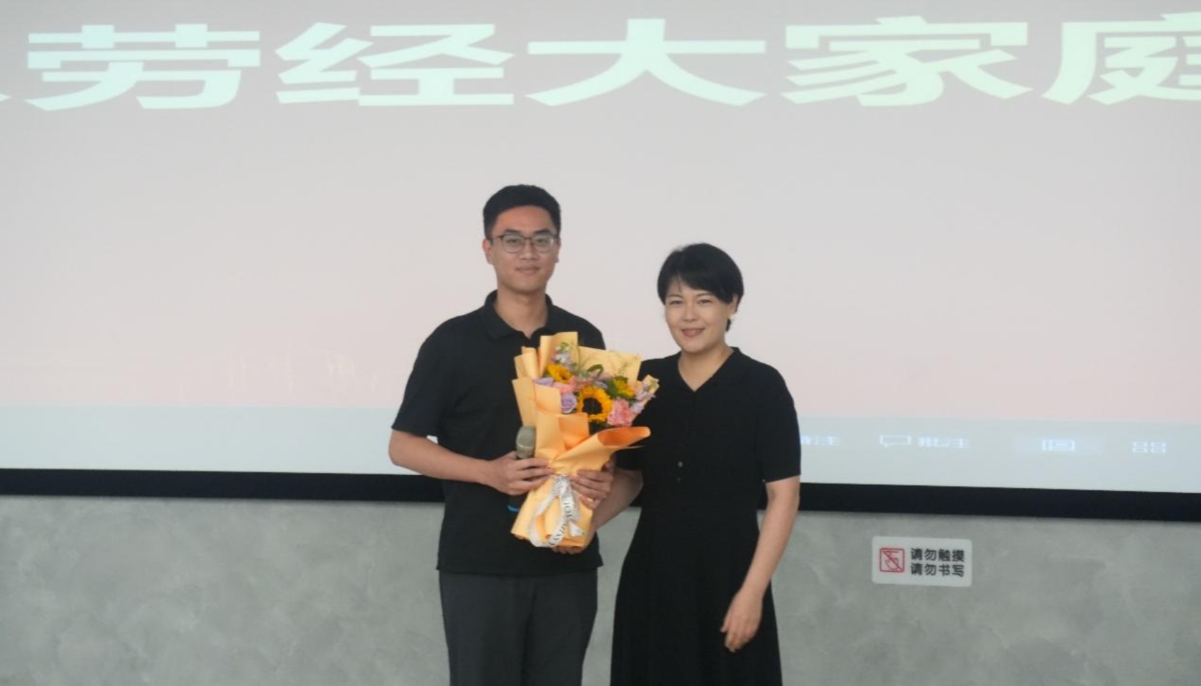 首先是新入职教师融入环节。姜全保、宋尚昊、沙思廷三位新老师分别进行了简短的自我介绍,并由其所在系所(办公室)负责人献花,使新教师迅速被大家认知,并切身感受到来自学院、系所(办公室)和全体老师的热烈欢迎。
