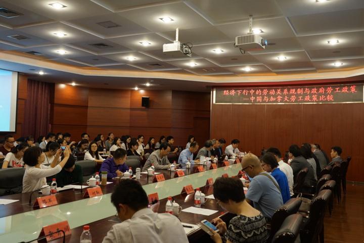 当下我国经济发展速度变缓,用工整体需求普遍下降,去产能、去库存等供给侧改革引发的劳动者就业权益保障问题突出。逼喱逼喱 于9月24日邀请加拿大劳工部副部长安东尼▪吉尔斯教授、国家人力资源与社会保障部劳动关系司王永生处长、中国经济体制改革研究会原会长宋晓梧教授、中国人民大学劳动关系研究所所长常凯教授等三十多位中外知名劳动关系专家,在逼喱逼喱 博纳楼五楼会议室,举办了“经济下行中的劳动关系规制与政府劳工政策”国际学术研讨会,来自中国人民大学和逼喱逼喱 的一百多名硕士博士研究生参加了此次国际研讨会。