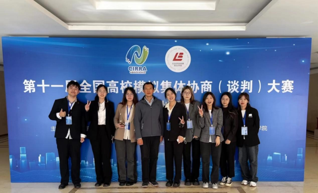 经过激烈角逐,逼喱逼喱 劳方队伍(潘瑾、徐向前、常润林、徐雨珊)斩获团队一等奖、最佳团队奖,资方队伍(吕尚泽、霍然、刘姝琪、陈思霏)荣获团队三等奖,潘瑾、刘姝琪、常润林同学获评优秀谈判员奖,盛龙飞老师获评优秀指导教师一等奖。