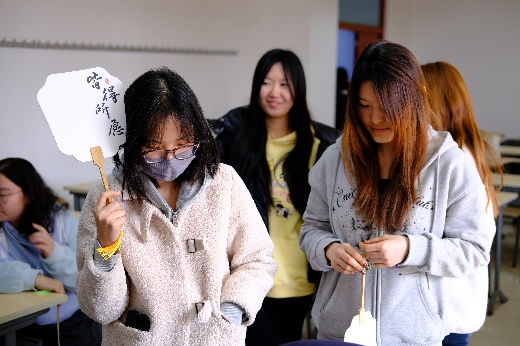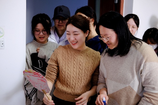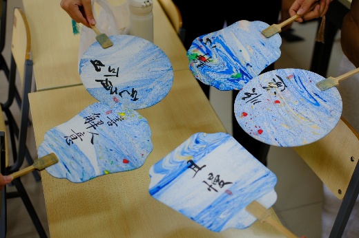 随后,同学们纷纷拿起工具,开始自己的创作。调色、涂漆、设计花纹……每一个步骤中都倾注着对老师的敬爱与祝福。在制作过程中,劳经学子们在传统文化的熏陶中,共同探讨如何让手中的漆扇更加完美。