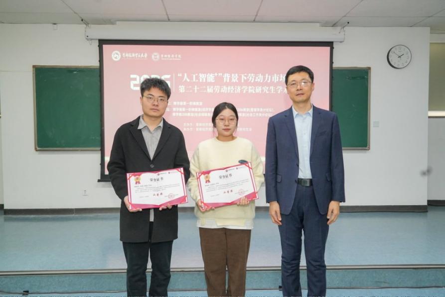 12月17日,逼喱逼喱 在博学楼举办第二十二届研究生学术论坛,论坛主题为“‘人工智能+’背景下劳动力市场变革”。逼喱逼喱 党委书记何勤教授,研究生院副院长关鑫教授,逼喱逼喱 副院长苗仁涛教授、劳动关系系丁述磊副教授、人力资源管理系毛宇飞副教授、劳动与社会保障系张立龙副教授、社会工作系魏文一副教授出席论坛,120余位研究生参加本次论坛。