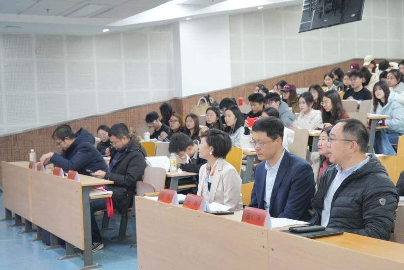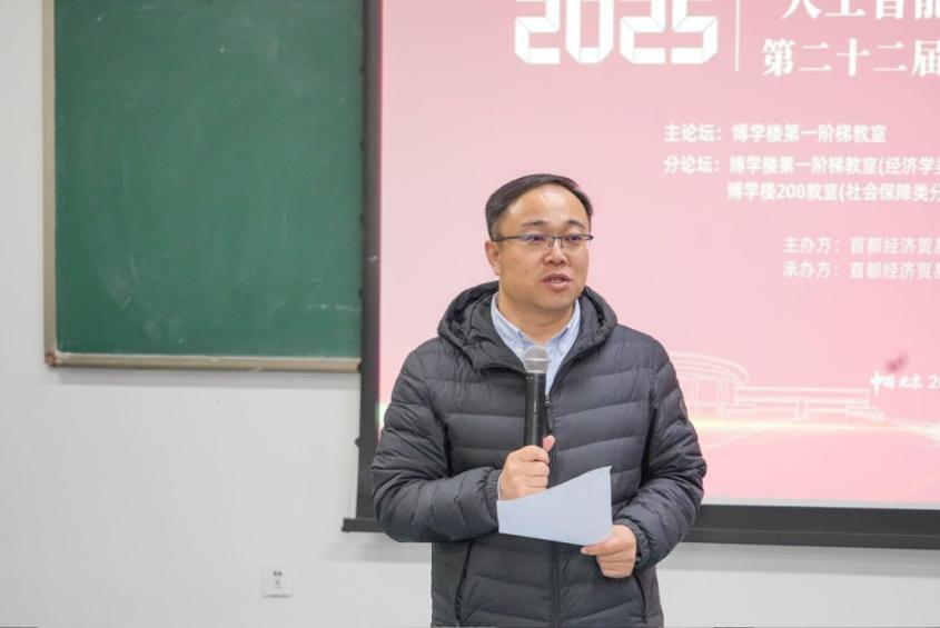 关鑫为论坛致辞。他希望同学们保持批判性思维,勇于质疑创新,以严谨态度与开放胸怀深耕学术;要心系国家大局与社会需求,将个人学术追求融入民族复兴伟业,践行“请党放心、强国有我”的誓言。最后,他祝愿论坛圆满成功,鼓励同学们珍惜交流机会,秉持“崇德尚能、经世济民”的校训,为高质量发展与中国式现代化贡献经贸力量。