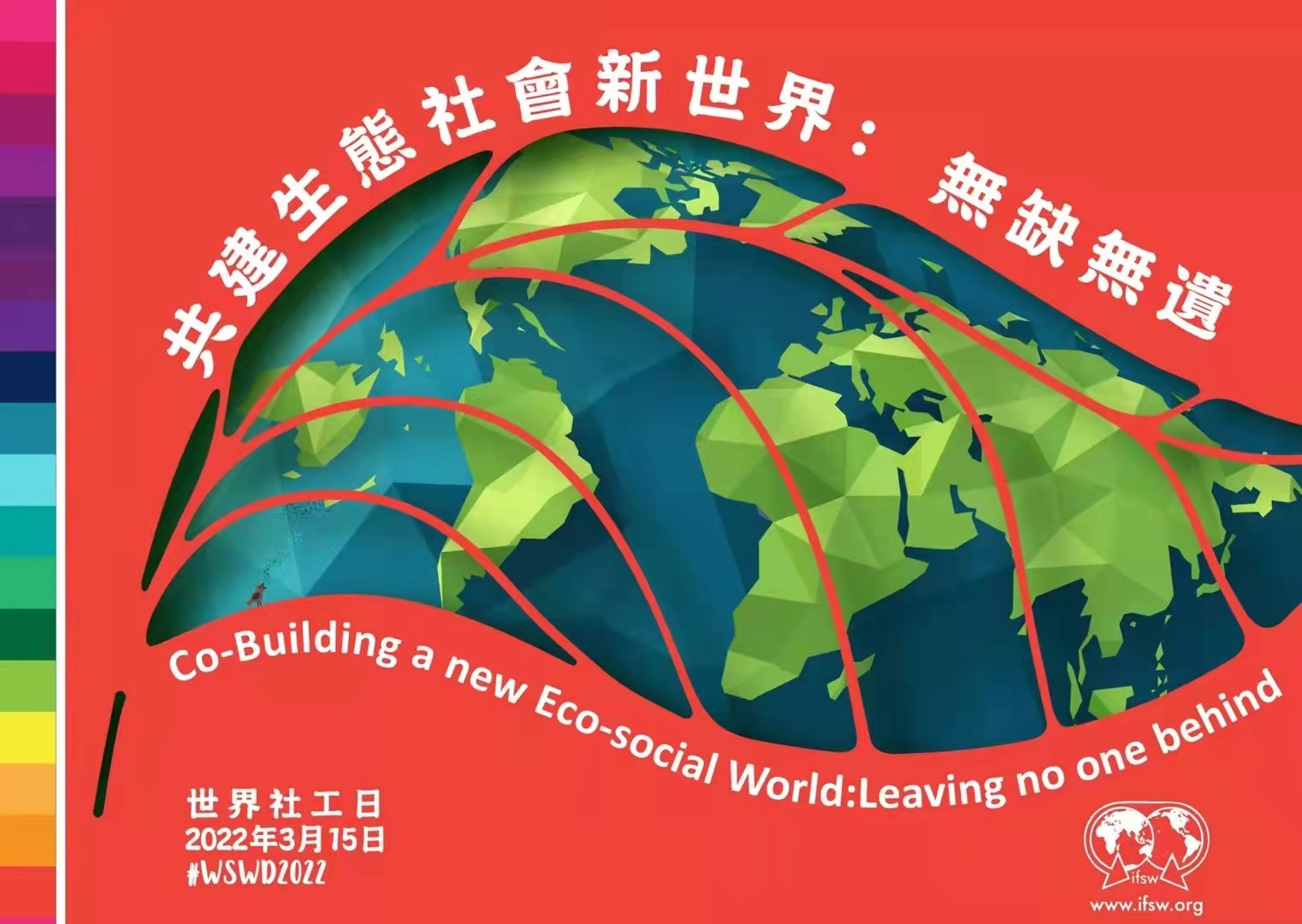 今年世界社工日的主题是:“共建生态社会新世界,不让任何人掉队”。这意味着社工不只在社会环境方面关注人类的健康和幸福,它的议题也延伸到了与每个人生存发展息息相关的自然环境和生态正义。人类普遍地受到环境污染、自然灾害、气候变化等生态问题的影响,但影响最大的仍然是某些特定人群,因此,社会工作将努力为人类与环境的可持续性、相互依赖、共同健康而努力。