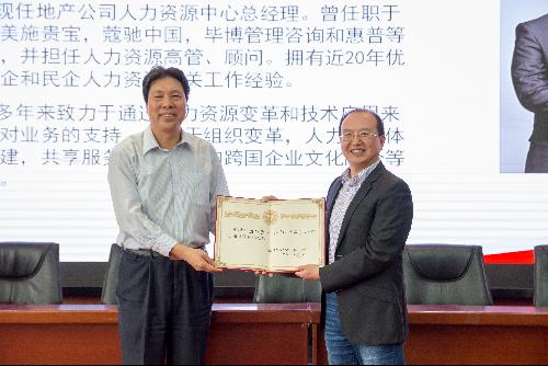 最后冯喜良院长作为校方代表为某知名公司人力资源中心总经理房磊、旷视科技高级副总裁郑绍辉颁发了客座教授荣誉聘书。