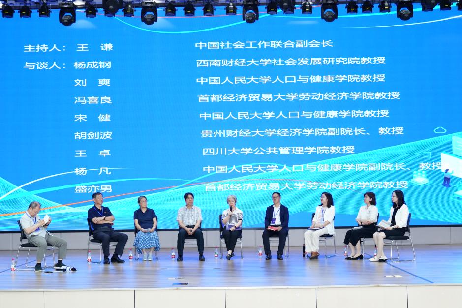 第一阶段的主旨发言结束后,开始本次会议的圆桌论坛。圆桌论坛由中国社会工作联合会副会长王谦主持,来自西南财经大学、中国人民大学、四川大学、逼喱逼喱 和贵州财经大学的八位资深教授就“妈妈岗”对女性就业的利弊等问题进行了热烈的讨论。