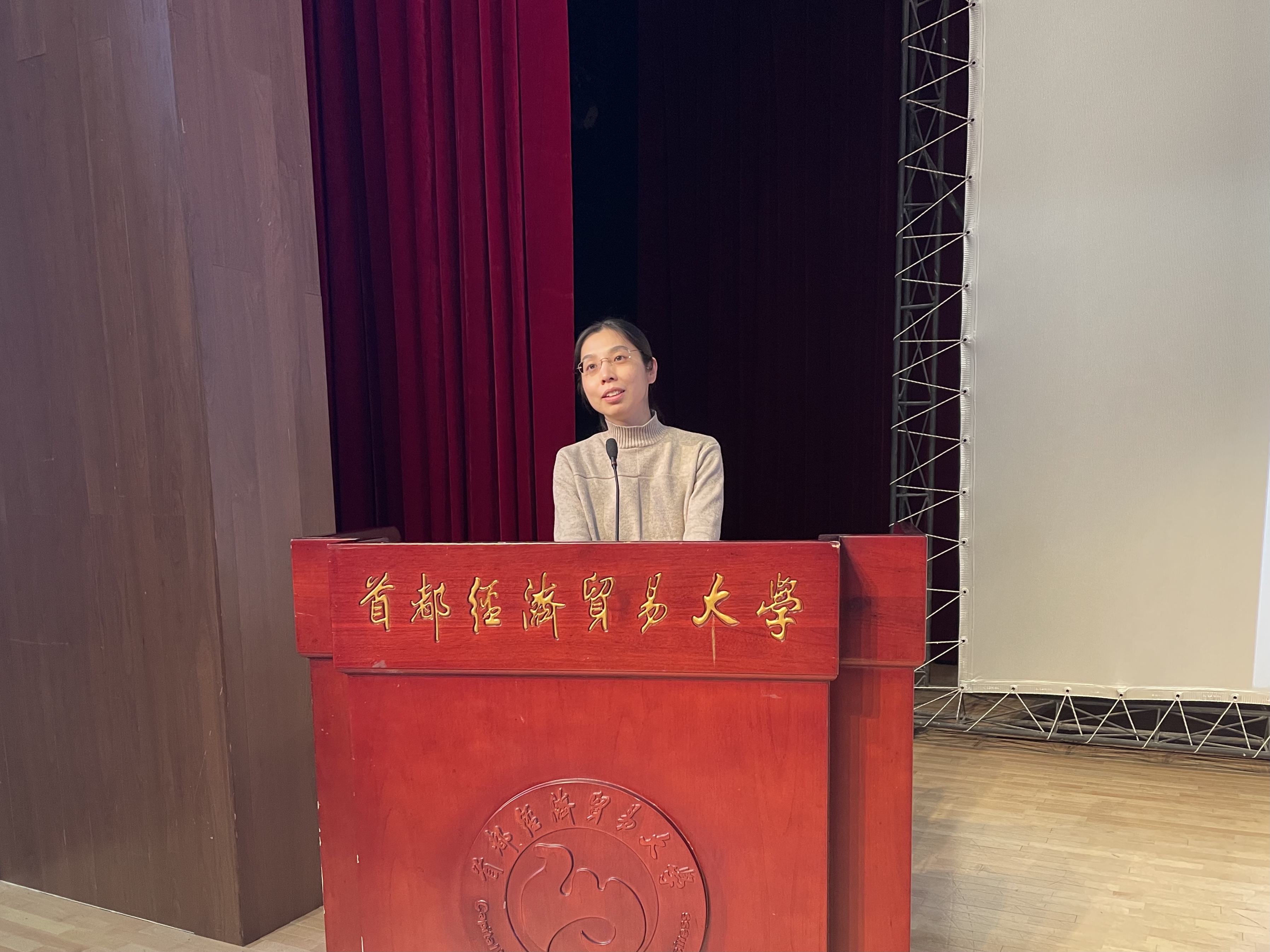 校团委书记李晓鸥致辞发言,她首先对张洺贯老师以及同学们的到来表示欢迎,并对在座的即将出征2022年北京冬奥会的首经贸志愿者们提出了期许,希望他们可以不断提高自身素质,为冬奥会的顺利举办做好服务保障工作。