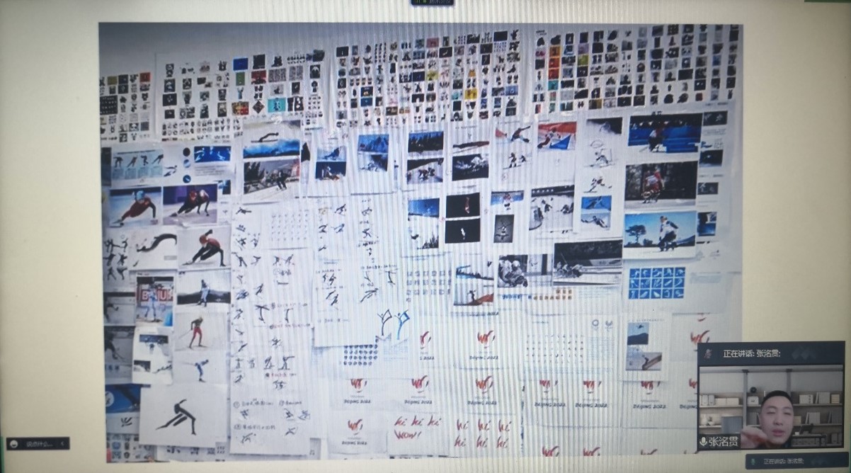 由于疫情原因,张洺贯老师无法亲自到达现场为大家授课,故本次讲座采用线上讲课的方式进行。张洺贯首先讲述了冬奥会体育图标在冬奥会中的重要性,表示冬奥图标是构成一届冬奥会景观的重要基础形象元素,不仅具有很强的功能性,也是传达冬奥会举办理念和主办国文化的重要载体,同时,这些图标将会在冬奥会期间现身冬奥场馆、特许产品、交通工具及城市景观当中,成为本次冬奥“代言人”。