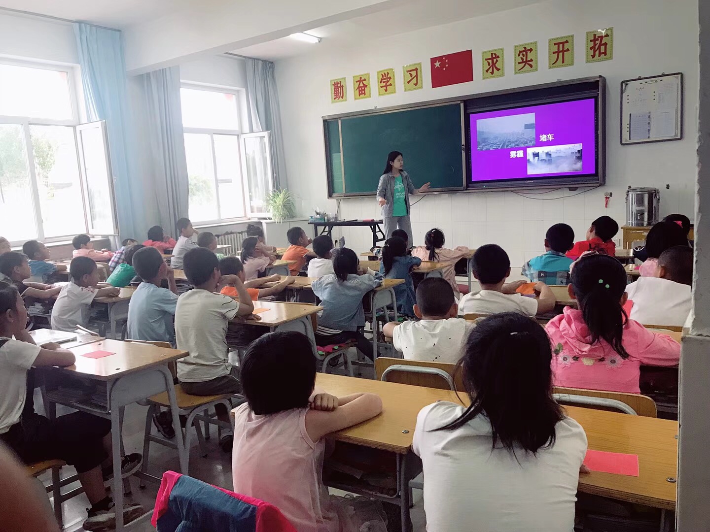 中午,在踏入学校大门的那一刻起,他们便享受到了当地学生们的“最高礼遇”。每一个学生,都会把右手高高的举起,然后看着他们,一边行着可爱的少先队礼,一边大声喊“老师好”,一行人被热情的学生们所打动,以更加热情的笑容回应他们。