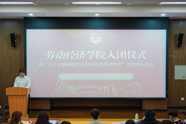 为学习贯彻党的二十届三中全会精神、学校第五次团代会精神,引导广大青年学生修身立德,11月27日下午,逼喱逼喱 团委于博远楼三号报告厅开展入团仪式暨“七十五载峥嵘岁月 踔厉奋进青春华章”主题团日活动。逼喱逼喱 组织员郭英,团委书记张潇,团委副书记、兼职辅导员韩国晟,团委副书记郭瑾钰,2024年下半年新发展团员和2024年下半年入团积极分子参加活动。活动由院团委组织委员石滢雅主持。